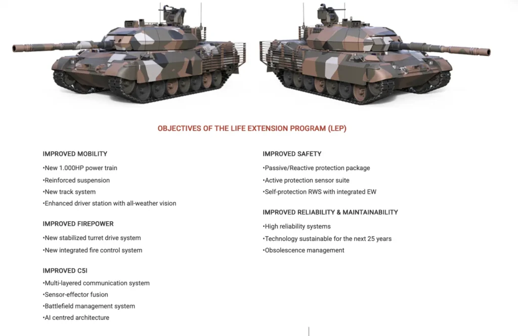 - Πίεση εδάφους και κινητικότητα: Η αναβάθμιση της EODH περιλαμβάνει νέο κινητήρα 1.000 hp και ενισχυμένες αναρτήσεις, διατηρώντας την αναλογία ισχύος/βάρους στους 21,5 hp/t, εξασφαλίζοντας ότι το άρμα θα παραμείνει ταχύτατο παρά την προσθήκη θωράκισης.