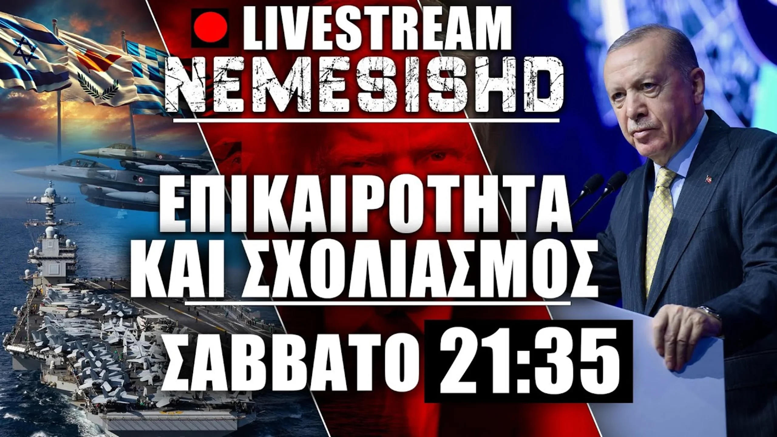 Μην χάσετε απόψε, Σάββατο, στις 21:35 το LIVE του NemesisHD «Εξελίξεις με Κύπρο | Ουκρανία-Ρωσία, Λίβανο-Ισραήλ-Γάζα-ΗΠΑ και πολλά ακόμη». Παρακολουθήστε εδώ: