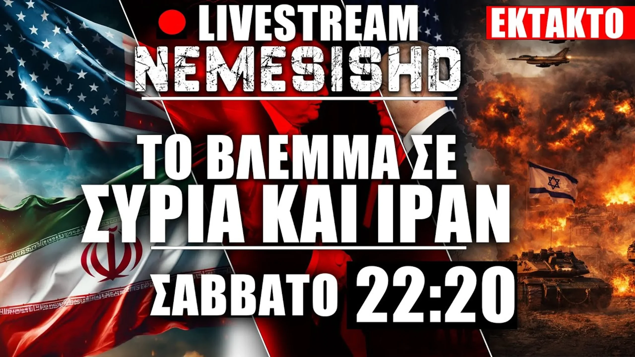 Μην χάσετε απόψε, Σάββατο, στις 22:20 το LIVE του NemesisHD «Στόχος ΗΠΑ-Ισραήλ το Ιράν, παγκόσμιες εξελίξεις, Ουκρανία-Ρωσία & Κούρδοι». Παρακολουθήστε εδώ: